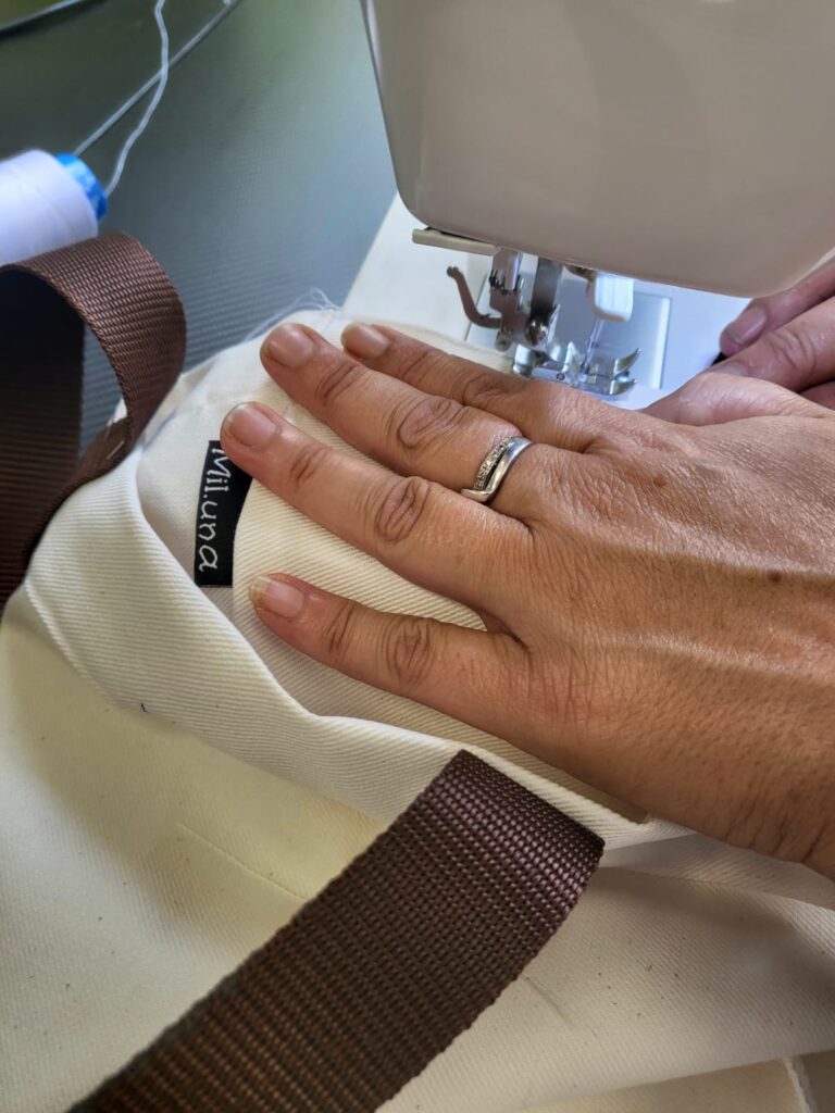 «Mil.una Sagunt es un proyecto de acompañamiento e inserción sociolaboral para mujeres y familias en situación de vulnerabilidad, con la colaboración del Ayuntamiento de Sagunto. Contamos entre otras actividades, con talleres prelaborales de confección y patronaje para mejorar la empleabilidad de las participantes. A través de nuestra marca, realizamos un trabajo de sensibilización y visibilización con diferentes entidades y particulares que compran los productos Mil.Una realizados en los talleres, contribuyendo así a crear relaciones comerciales más justas y sostenibles.»