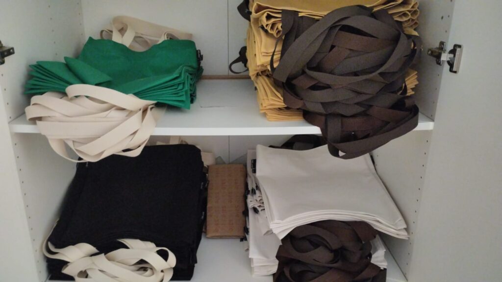 Queremos descatar que para el merchandising hemos colaborado, una vez más, con el proyecto Mil.Una. Este inspirador proyecto se ha encargado de la confección las bolsas del congreso, reutilizando trozos de tela.
